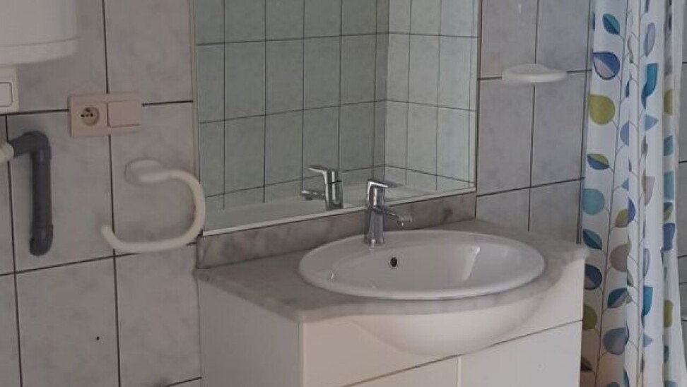 De badkamer beschikt over een badkuip en wastafel.